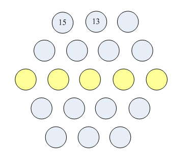 • 把 1 2 3 ... 19 共19个整数排列成六角形状,如下:
