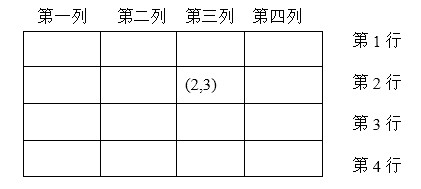 (2,1) (2,2) (2,3) (2,4) {同一行上格子的位置}
