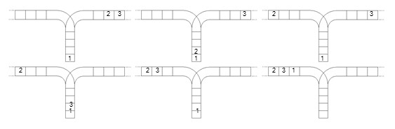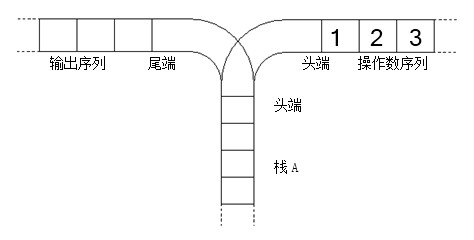 使用这两种操作,由一个操作数序列就可以得到一系列的输出序列,下图所示为由1 2 3生成序列2 3 1的过程。(原始状态如上图所示)