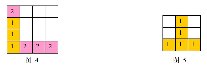 b) 当出现行和列都满足消除条件且行列共享某个方块时,行和列上满足消除条件的所有方块会被同时消除(例如下面图5所示的情形,5个方块会同时被消除)。