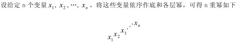 n 重幂。不同的加括号方式导致不同的 n 重幂。例如,当 n=4 时,全部 4 重幂有 5 个。