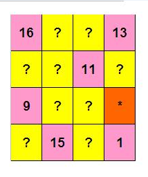 • 他把1,2,3,...16这16个数字填写在4 x 4的方格中。