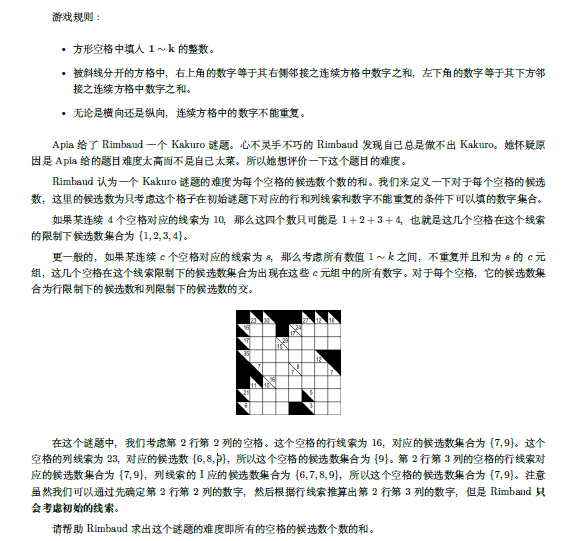 左边为一个Kakuro 游戏,右边为这个游戏的唯一解。